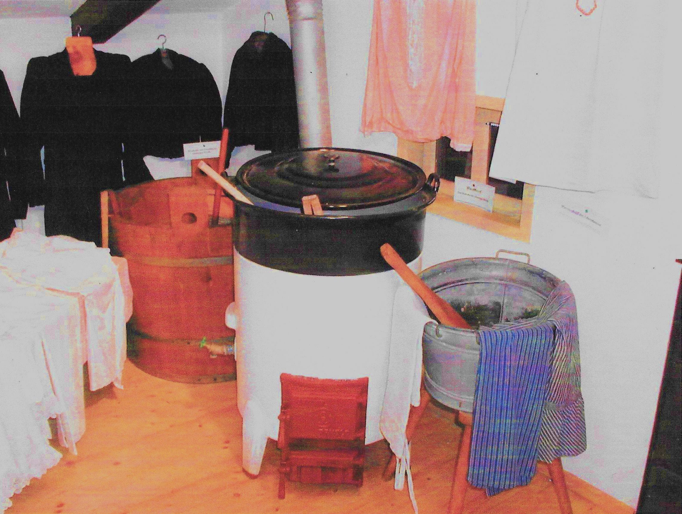 Aber auch die häusliche Arbeit drehte sich zu goßen Teilen um die Kleidung: Waschzuber, Waschtisch, Waschbrett und all diese Utensilien erinnern daran, welch hartes Handwerk eigentlich notwendig war, wollte man vor Erfindung der Waschmaschine stets sauber gekleidet erscheinen.