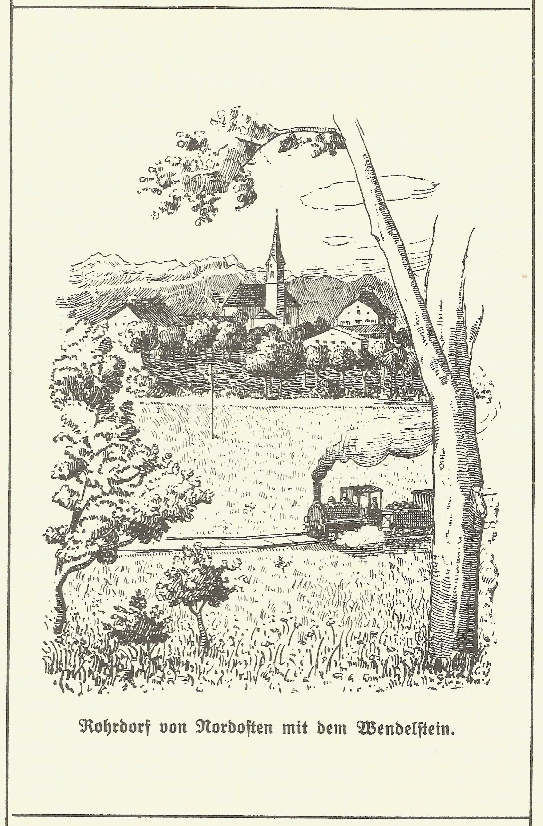 Der Rohrdorfer Beitrag zur Ausstellung befasste sich mit den Entwicklungsimpulsen, die die Moderne für die ländliche Gemeinde mit sich brachte und die gerade Fuß zu fassen begannen, als der Krieg über das Land hereinbrach. So symbolisiert die Eröffnung der Bahnlinie mit den daran liegenden Industrien den neuen Stellenwert der Technik, der Neubau der Schule und die Herausgabe der ersten umfangreichen Ortschronik den von Bildung und Wissenschaft.